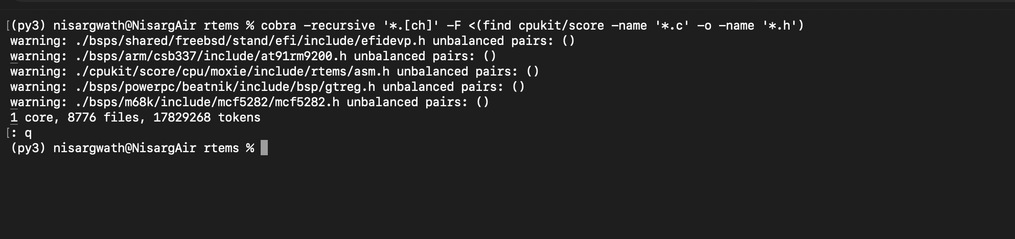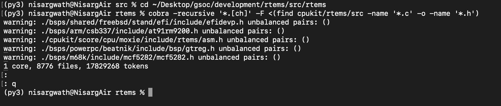Thanks for the suggestion! I’ll start experimenting with cpukit/rtems/src and see what kind of results Cobra produces there. I’ll also try to understand how the analysis workflow could be automated so it integrates better with the RTEMS development process.