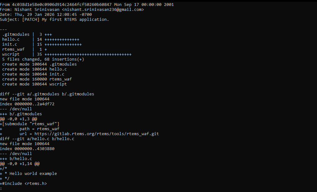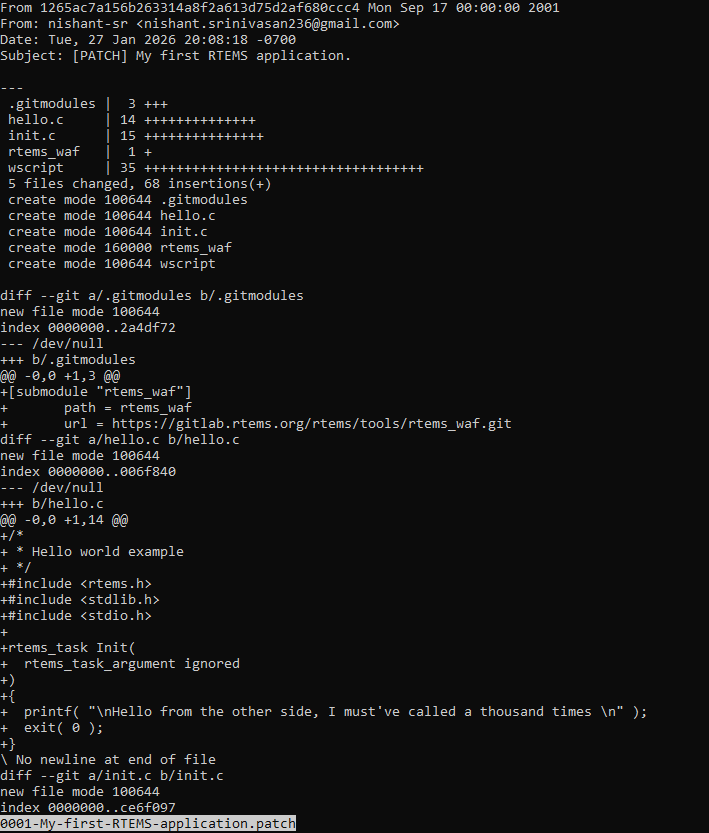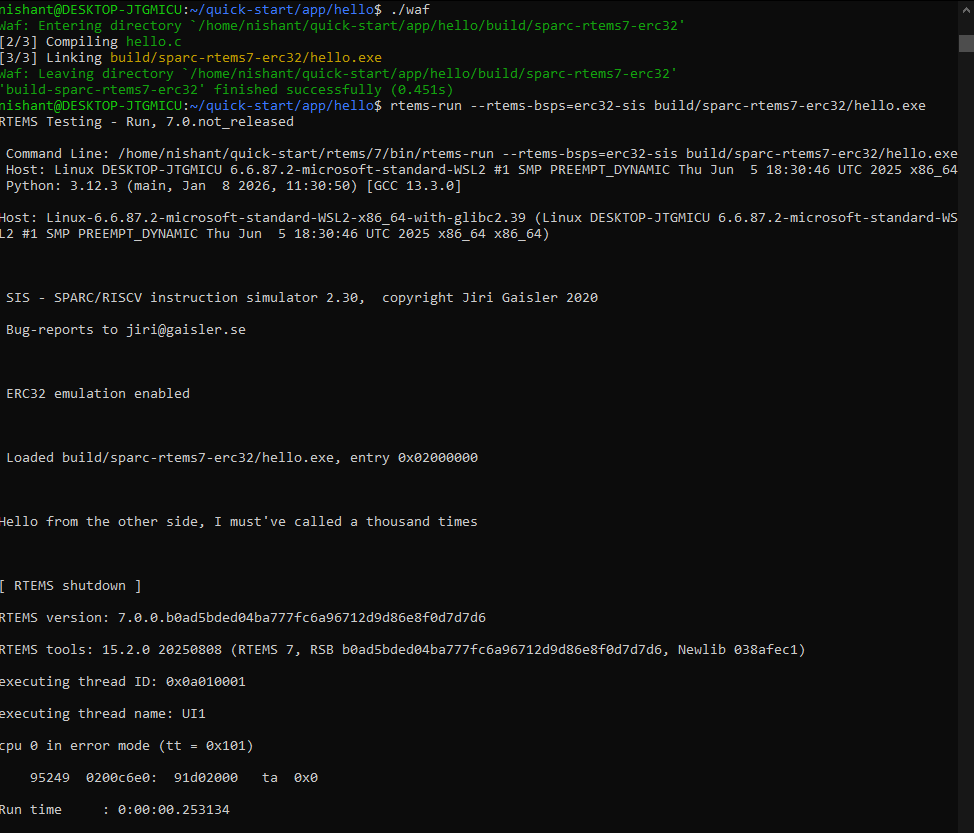My name’s Nishant and this is my hello world modification for GSOC 2026. Looking forward to working on RTEMS and learning more!