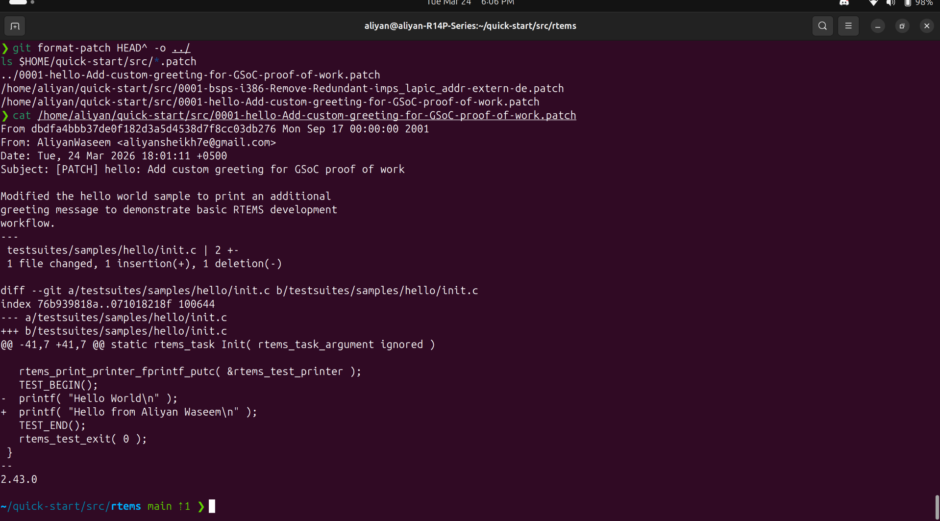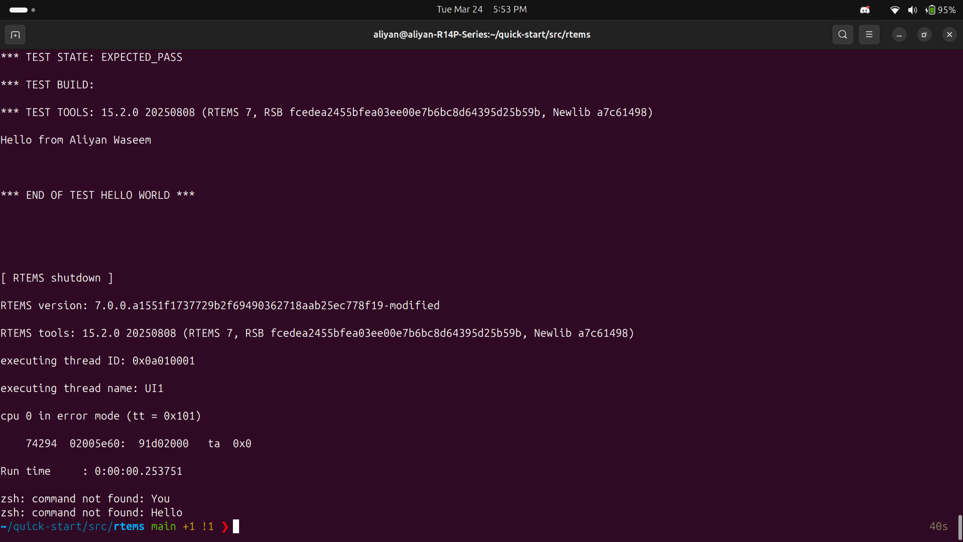 sample on the sparc/erc32 BSP. And make changes to it. Here is my proof of work: