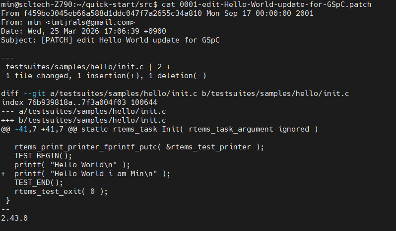 I have completed the tasks in the GSoC Getting Started document. Here are the screen capture and the patch file of my work.
