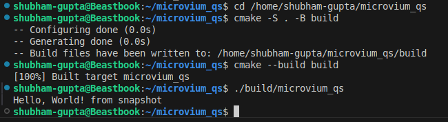I generated a snapshot of basic .js file to give console output. Then restored the snapshot using C.
