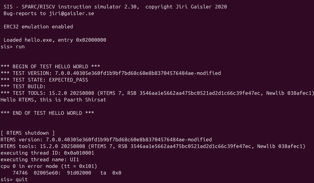 + printf( "Hello RTEMS, this is Paarth Shirsat\n" );