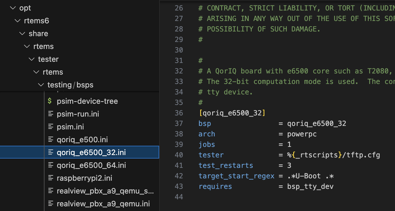 error: cannot find bsp configuration file: powerpc/qoriq_e6500_32.ini