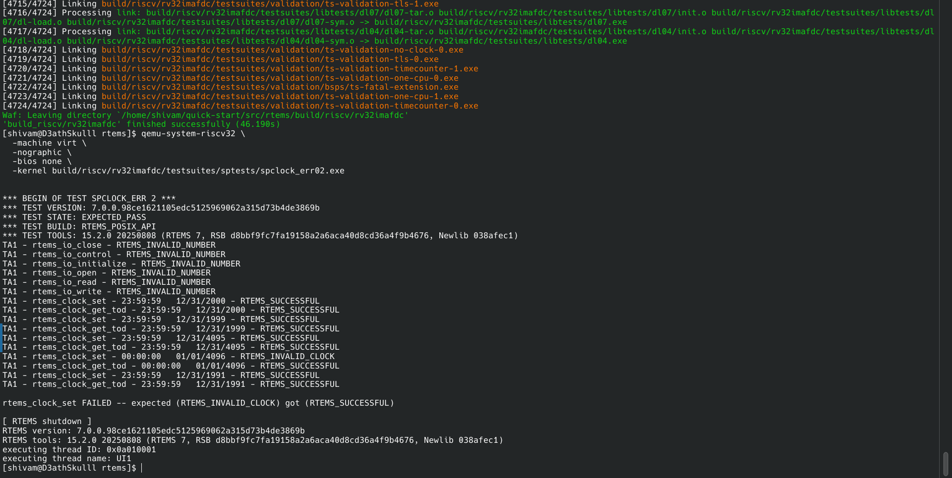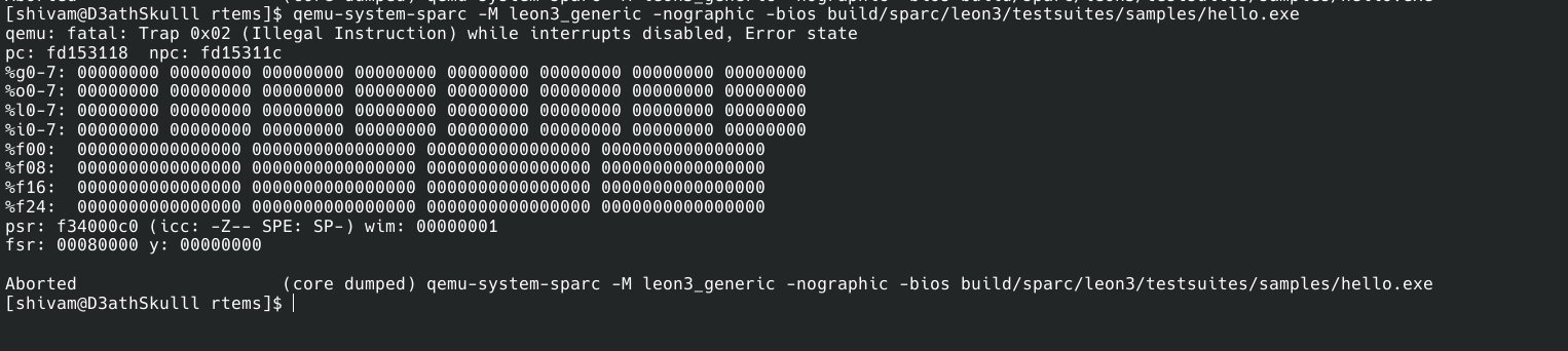The register dump suggests this is inside the timer interrupt handler, since mcause = 7. You can use riscv-rtems7-objdump -d spclock_err02.exe > a.txt and inspect the PC and the MEPC addresses to see what is being executed. The fact that the PC and MEPC are nearly identical is suspicious. I would guess that there’s an interrupt happening while execution is handling the previous interrupt.